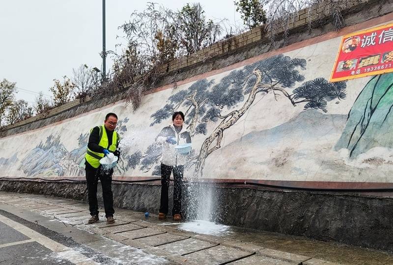 机械作业过后,养护人员又手持工具,对背阴坡、急弯等机械难以覆盖的死角进行人工补撒,确保除冰作业无死角、全覆盖。不一会儿,路面冰层逐渐消融,道路重新恢复了“生机”。