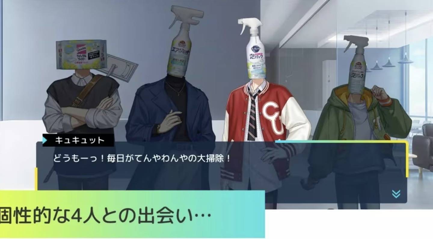 据介绍,本作将花王公司的清洁用品“珂珂透超浓缩洗洁精”、“地板清洁湿纸巾”、“魔术灵浴室清洁剂”、“魔术灵马桶除臭清洁剂”拟人化为男子偶像团体。玩家将扮演刚进入偶像经纪公司的新人制作人,负责培养这一偶像组合。